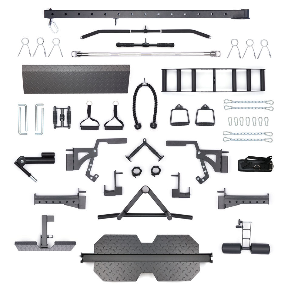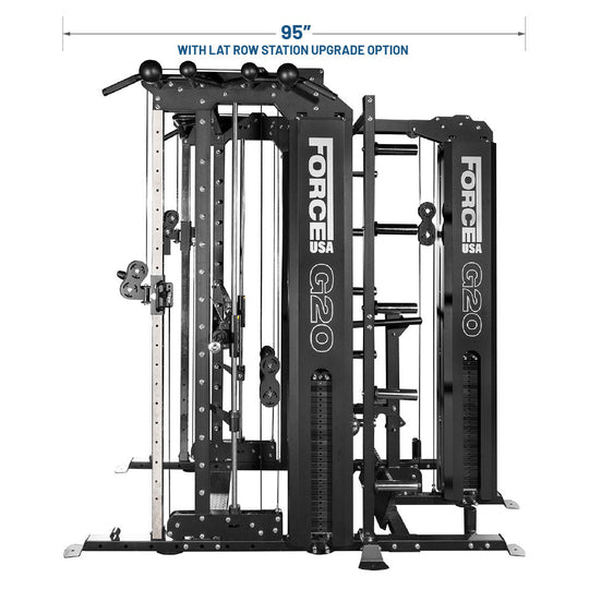 Level up your Force USA G20 All-In-One Trainer with the Lat Row Station Upgrade. Combines a low row, lat pulldown, and dip station into one compact footprint!