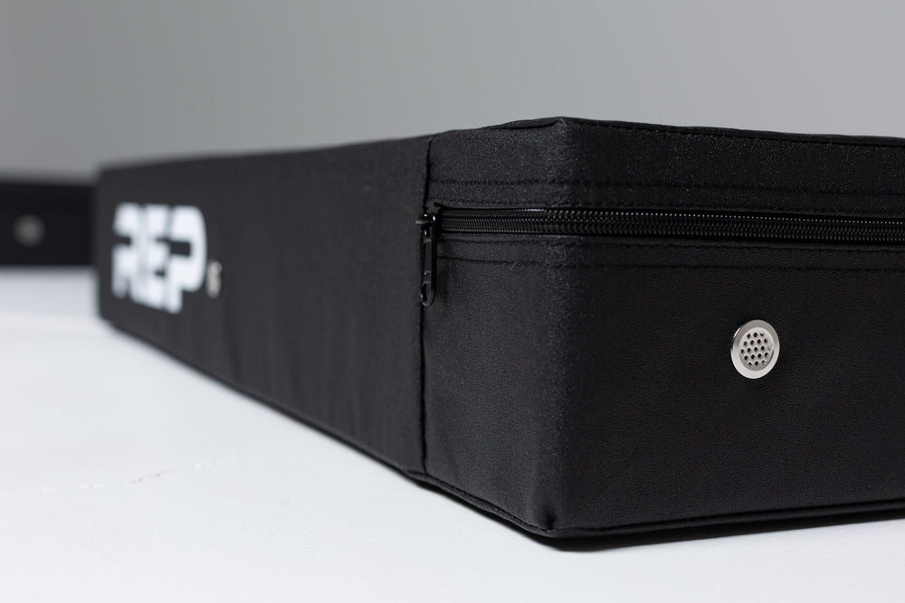 Les coussins sont également dotés de poignées de transport pratiques en nylon, faciles à déplacer et à soulever dans votre salle de sport. Malgré leur robustesse, ils ne pèsent que 12 kg chacun. Recouverts de vinyle noir résistant, les coussins sont ornés du logo REP blanc pour un look élégant et contrasté. Ils mesurent 75 cm (L) x 57 cm (l) et 12,7 cm (5 pouces) d'épaisseur. Vendus par paire.