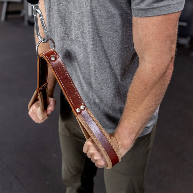 La sangle accessoire est incroyablement polyvalente, selon son utilisation. Elle est particulièrement adaptée au travail des bras, du dos et des abdominaux. Vous pouvez l'utiliser pour les extensions de triceps, les curls marteau, les tirages visage et bien d'autres exercices. Fabriquée artisanalement en cuir pleine fleur tanné végétal, elle garantit une qualité exceptionnelle, une grande durabilité, une résistance à toute épreuve, une beauté naturelle et un souci du détail remarquable. La sangle accessoire en cuir REP® USA est vendue sans mousqueton. Ces fixations de câble uniques sont fabriquées à la main par une petite entreprise américaine appartenant à un ancien combattant.